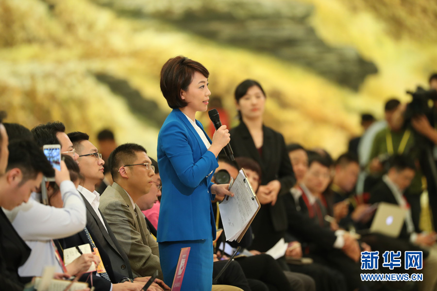 2017年10月17日下午,中國(guó)共產(chǎn)黨第十九次全國(guó)代表大會(huì)新聞發(fā)言人在人民大會(huì)堂三樓金色大廳舉行新聞發(fā)布會(huì),并回答中外記者提問(wèn)。圖為中央電視臺(tái)記者提問(wèn)。新華網(wǎng) 翟子赫 攝