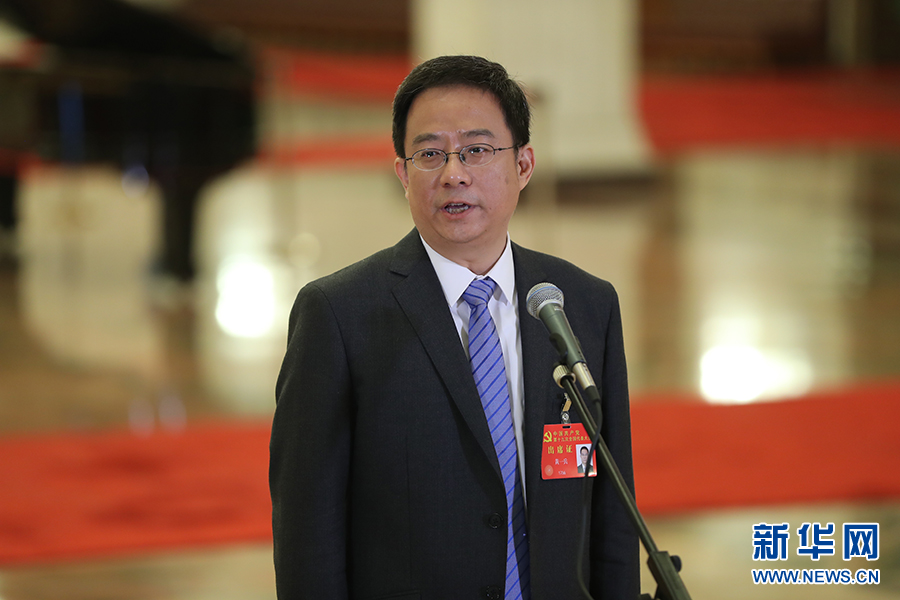 10月19日,“黨代表通道”第二場采訪活動(dòng)在人民大會(huì)堂舉行。圖為黃一兵代表接受采訪。新華網(wǎng) 翟子赫 攝