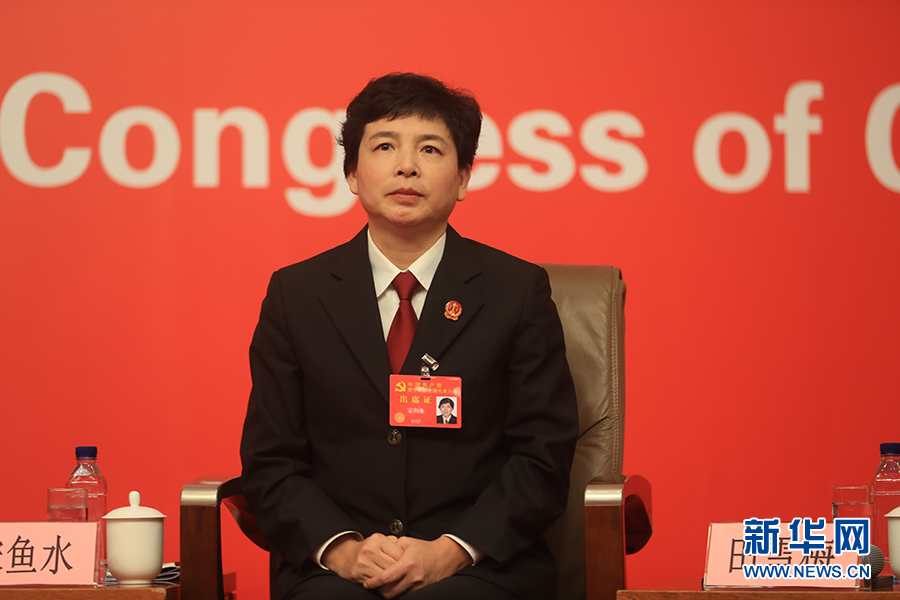 ??? 10月19日,十九大新聞中心舉辦集體采訪,邀請政法戰(zhàn)線代表談全面推進依法治國。圖為北京知識產(chǎn)權(quán)法院黨組成員、副院長宋魚水。新華網(wǎng) 郝廣鵬攝