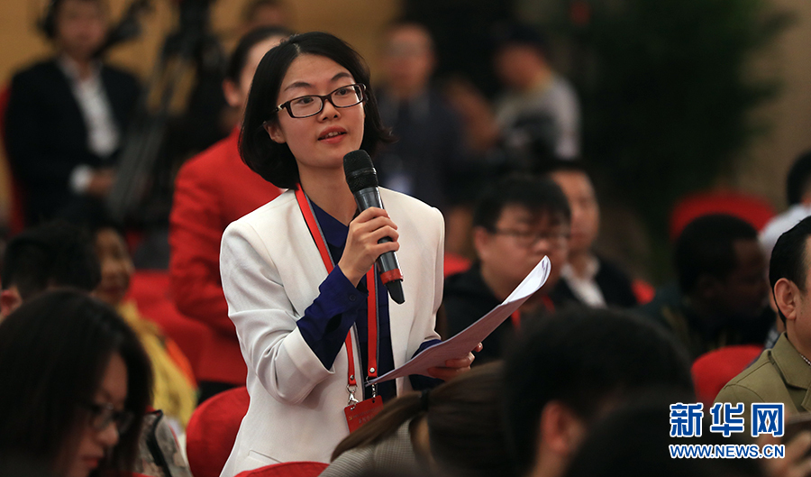 ??? 10月19日,十九大新聞中心舉辦集體采訪,邀請政法戰(zhàn)線代表談全面推進依法治國。圖為中國新聞社記者提問。新華網(wǎng) 郝廣鵬攝