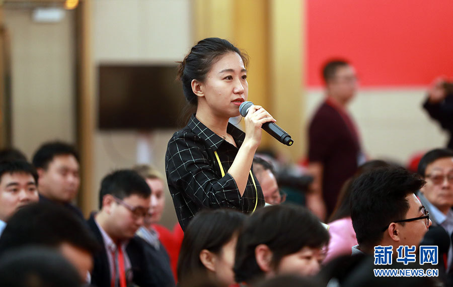 ??? 10月19日,十九大新聞中心舉辦集體采訪,邀請工信和通訊領(lǐng)域代表談走新型工業(yè)化道路。圖為香港大公文匯傳媒集團記者提問。新華網(wǎng) 郝廣鵬攝