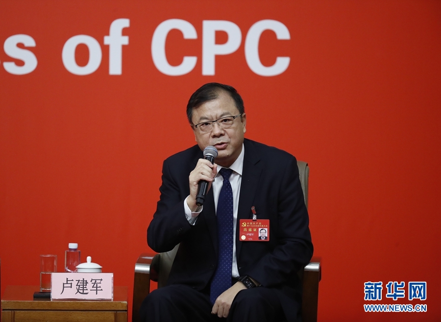 10月20日,中國共產(chǎn)黨第十九次全國代表大會新聞中心舉行主題為“實施創(chuàng)新驅(qū)動發(fā)展戰(zhàn)略”的集體采訪活動??萍疾奎h組書記、副部長王志剛,中國科學(xué)院遺傳與發(fā)育生物學(xué)研究所研究員、分子系統(tǒng)生物學(xué)研究中心主任王秀杰,浪潮集團首席科學(xué)家、中國工程院院士王恩東,陜西省委科技工委書記、科技廳廳長盧建軍,南昌大學(xué)副校長江風(fēng)益接受采訪。這是盧建軍在回答記者提問。新華社記者 沈伯韓 攝