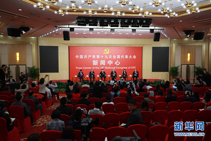 ??? 10月20日,十九大新聞中心舉辦集體采訪活動,主題為“實施創(chuàng)新驅(qū)動發(fā)展戰(zhàn)略”。圖為集體采訪現(xiàn)場。新華網(wǎng) 郝廣鵬攝