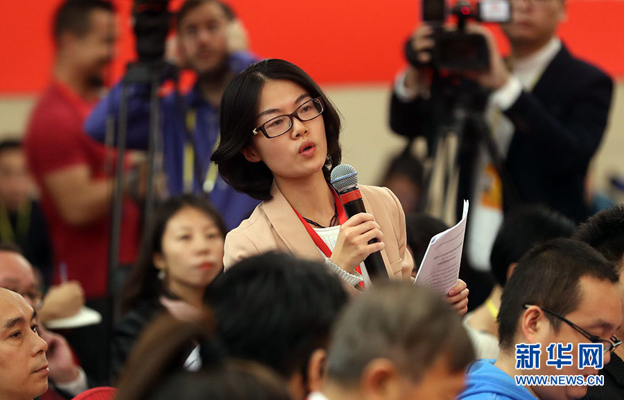 10月21日,十九大新聞中心舉辦記者招待會(huì),邀請(qǐng)國(guó)家發(fā)展改革委黨組書(shū)記、主任何立峰,副主任張勇,副主任寧吉喆介紹以新發(fā)展理念為引領(lǐng),推進(jìn)中國(guó)經(jīng)濟(jì)平穩(wěn)健康可持續(xù)發(fā)展有關(guān)情況,并回答記者提問(wèn)。圖為中國(guó)新聞社記者提問(wèn)。新華網(wǎng) 郝廣鵬攝