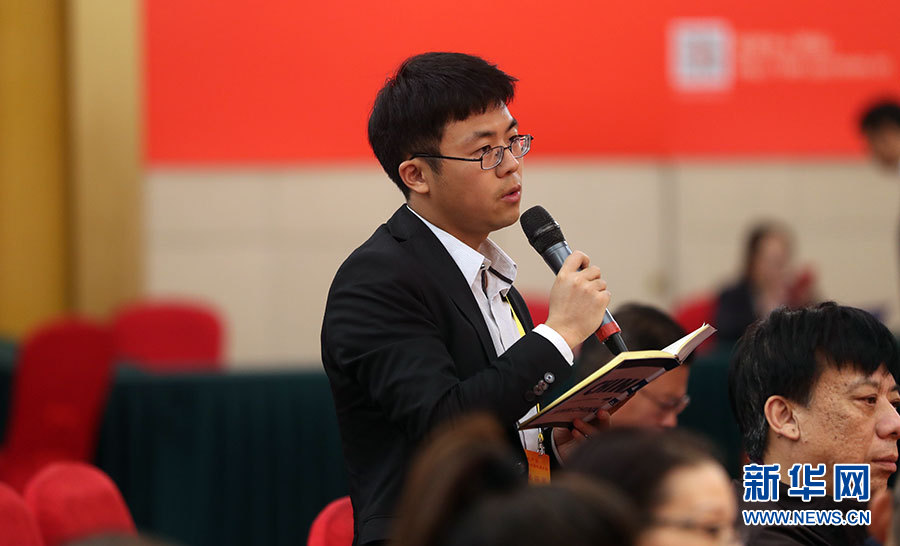 10月21日,十九大新聞中心舉辦集體采訪活動,主題為“農(nóng)業(yè)科技創(chuàng)新”。圖為中國日報記者提問。新華網(wǎng) 郝廣鵬攝