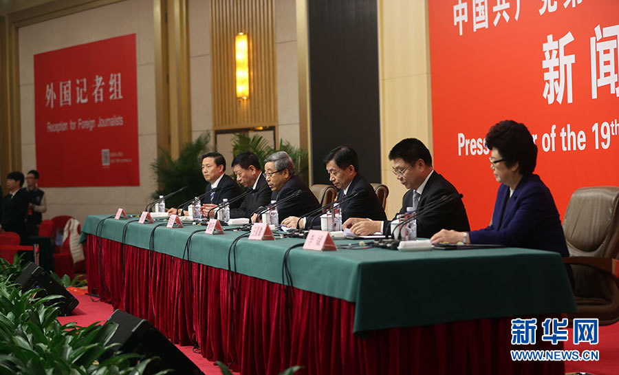 10月22日,十九大新聞中心舉辦記者招待會(huì),邀請(qǐng)教育部黨組書記、部長(zhǎng)陳寶生,民政部黨組書記、部長(zhǎng)黃樹賢,人力資源社會(huì)保障部黨組書記、部長(zhǎng)尹蔚民,住房城鄉(xiāng)建設(shè)部黨組書記、部長(zhǎng)王蒙徽,國家衛(wèi)生計(jì)生委黨組書記、主任李斌介紹滿足人民新期待,保障改善民生有關(guān)情況,并回答記者提問。圖為記者招待會(huì)現(xiàn)場(chǎng)。新華網(wǎng) 郝廣鵬攝