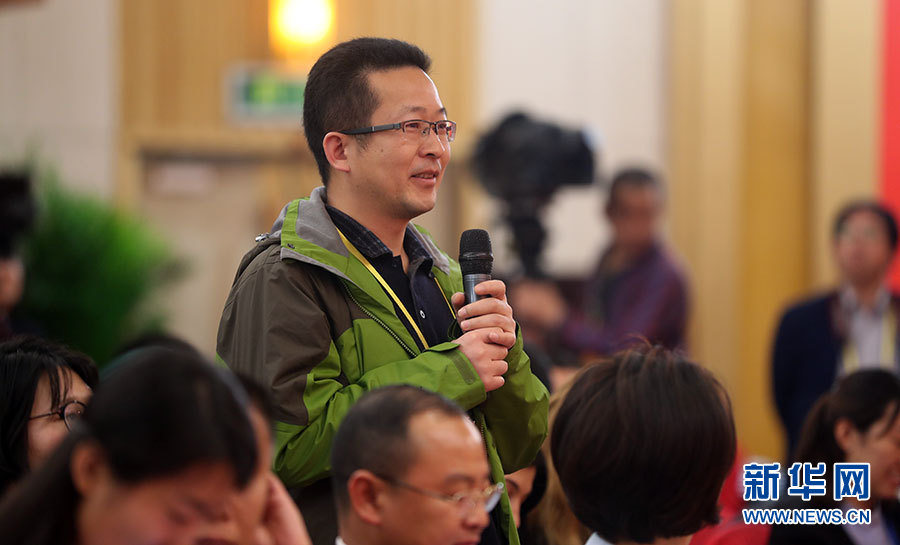 10月22日,十九大新聞中心在梅地亞中心二層新聞發(fā)布廳舉辦集體采訪活動(dòng),主題為“中國(guó)特色強(qiáng)軍之路邁出堅(jiān)定步伐”。圖為解放軍報(bào)記者提問(wèn)。新華網(wǎng) 郝廣鵬攝