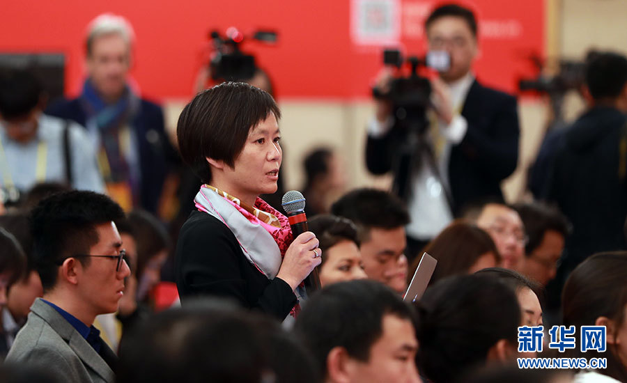 10月23日,十九大新聞中心舉辦記者招待會(huì),邀請(qǐng)中央財(cái)經(jīng)領(lǐng)導(dǎo)小組辦公室副主任楊偉民,環(huán)境保護(hù)部黨組書記、部長(zhǎng)李干杰介紹踐行綠色發(fā)展理念,建設(shè)美麗中國(guó)有關(guān)情況,并回答記者提問。圖為中國(guó)青年報(bào)記者提問。新華網(wǎng) 郝廣鵬攝
