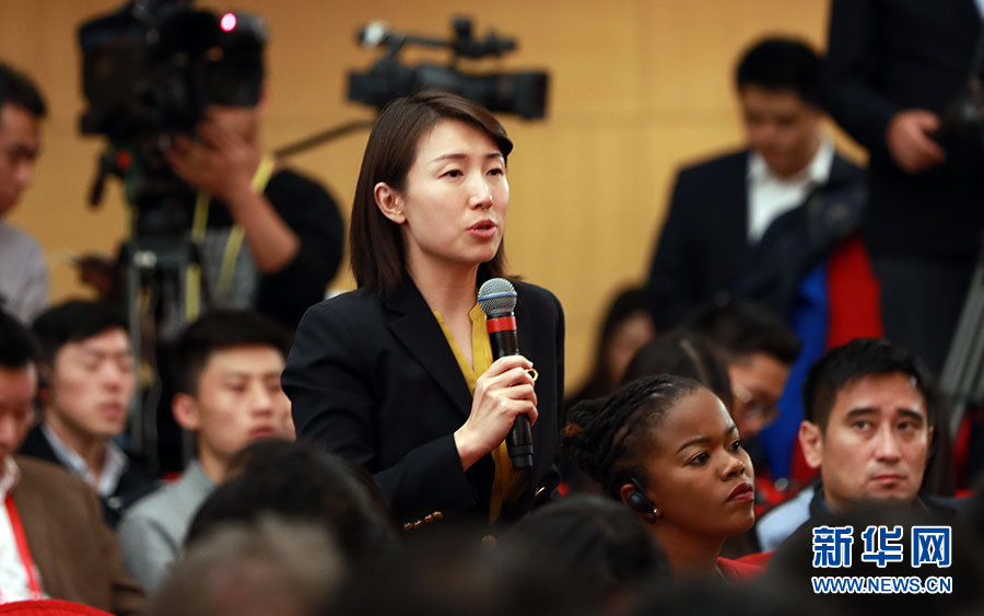 10月23日,十九大新聞中心舉辦記者招待會,邀請中央財經(jīng)領(lǐng)導(dǎo)小組辦公室副主任楊偉民,環(huán)境保護(hù)部黨組書記、部長李干杰介紹踐行綠色發(fā)展理念,建設(shè)美麗中國有關(guān)情況,并回答記者提問。圖為鳳凰衛(wèi)視記者提問。新華網(wǎng) 郝廣鵬攝