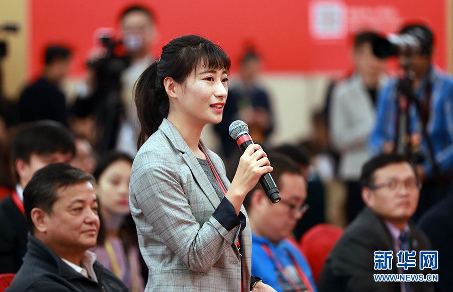 10月23日,十九大新聞中心舉辦記者招待會,邀請中央財經(jīng)領(lǐng)導(dǎo)小組辦公室副主任楊偉民,環(huán)境保護(hù)部黨組書記、部長李干杰介紹踐行綠色發(fā)展理念,建設(shè)美麗中國有關(guān)情況,并回答記者提問。圖為中華合作時報記者提問。新華網(wǎng) 郝廣鵬攝