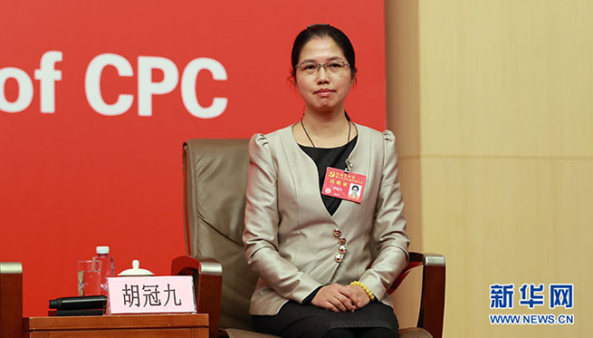 10月23日,十九大新聞中心舉辦集體采訪活動,主題為“打好生態(tài)環(huán)保攻堅(jiān)戰(zhàn)”。圖為江蘇省環(huán)境監(jiān)測中心副主任胡冠九。新華網(wǎng) 郝廣鵬攝