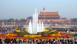 新中國已經(jīng)成立六十一年了,改革開放以來,中國沿著不同于歐美國家的現(xiàn)代化道路,實現(xiàn)了經(jīng)濟社會跨越式發(fā)展,邁出了令世人為之側(cè)目的“中國步伐”。大國崛起路漫漫,值此國慶佳節(jié),主持者與海內(nèi)外中華兒女共祝偉大祖國繁榮昌盛。