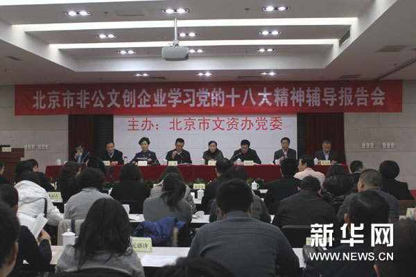 ?? 27日,北京市文資辦召開非公有制文化創(chuàng)意企業(yè)學(xué)習(xí)宣傳黨的十八大精神輔導(dǎo)報(bào)告會(huì)。圖為會(huì)議現(xiàn)場。新華網(wǎng)記者 陳元攝