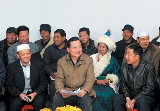 正值全省上下深入學習貫徹黨的十八大精神之際,11月22日,省委書記、省人大常委會主任強衛(wèi)在省委常委、省委秘書長王小青的陪同下,頂風冒雪,來到海南藏族自治州貴德縣河陰鎮(zhèn)大史家村,和基層黨員干部一起交流學習十八大精神的體會,面對面向基層黨員和農(nóng)牧民群眾宣講黨的十八大精神。