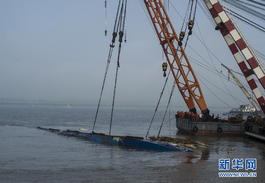 “東方之星”起吊迅速 船體已側(cè)翻過(guò)來(lái)