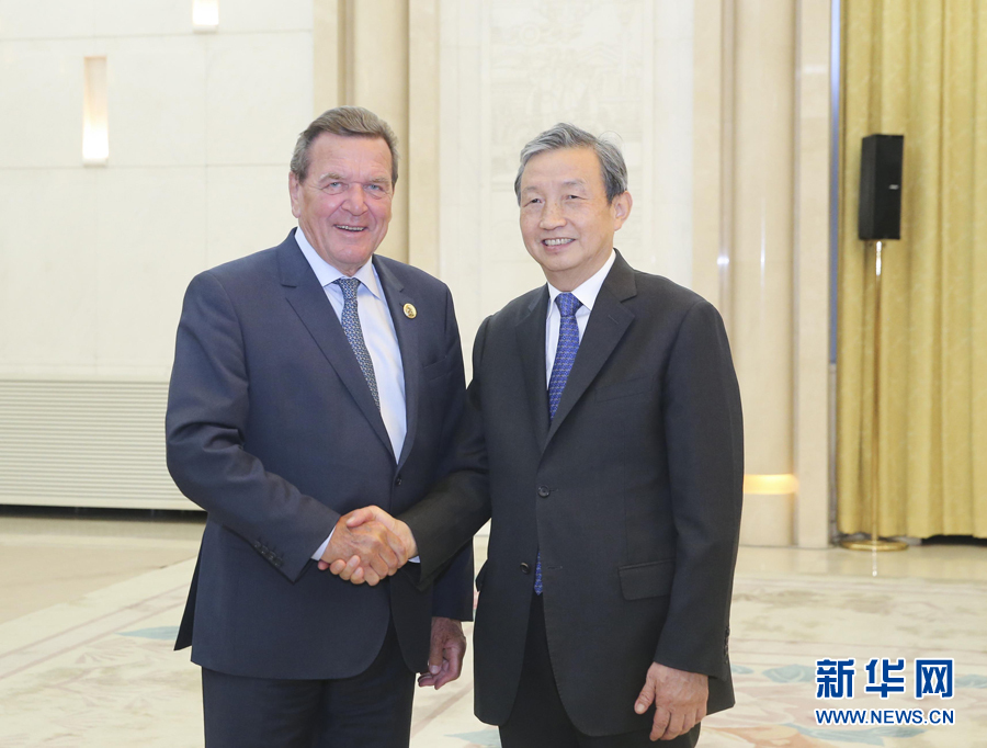 ??? 9月2日,中共中央政治局委員、國(guó)務(wù)院副總理馬凱在北京人民大會(huì)堂會(huì)見(jiàn)德國(guó)前總理施羅德。 新華社記者 丁林 攝
