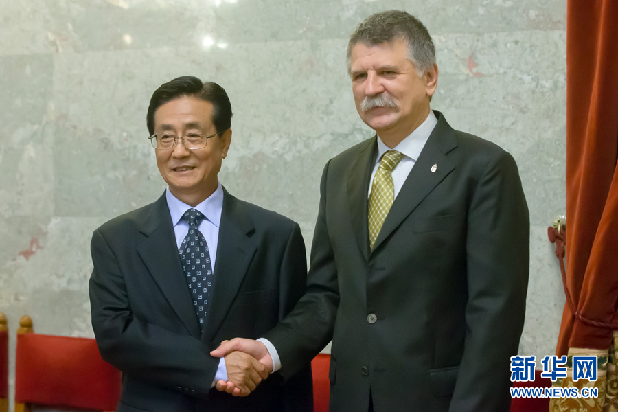 ??? 9月11日,中共中央書記處書記、中央紀(jì)委副書記趙洪祝(左)在匈牙利首都布達(dá)佩斯會見匈牙利國會主席克韋爾。應(yīng)匈牙利執(zhí)政黨青民盟邀請,中共中央書記處書記、中央紀(jì)委副書記趙洪祝率中共代表團于9月10日至11日訪問匈牙利。新華社發(fā)(弗爾季·奧蒂洛攝)