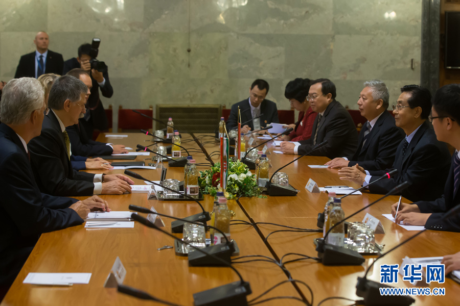 ??? 9月11日,中共中央書記處書記、中央紀委副書記趙洪祝(右二)在匈牙利首都布達佩斯會見匈牙利國會主席克韋爾(左二)。應匈牙利執(zhí)政黨青民盟邀請,中共中央書記處書記、中央紀委副書記趙洪祝率中共代表團于9月10日至11日訪問匈牙利。新華社發(fā)(弗爾季·奧蒂洛攝)