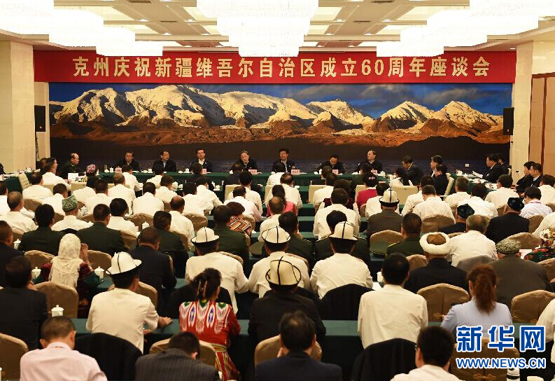 俞正聲還接見了克州有關(guān)負(fù)責(zé)同志、各界人士代表、援疆干部代表,同大家合影留念,并出席了克州慶祝新疆維吾爾自治區(qū)成立60周年座談會。