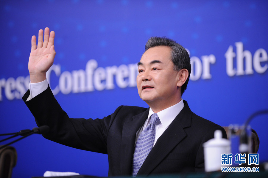 ?? 十二屆全國人大三次會(huì)議新聞中心于3月8日(星期日)10時(shí)在梅地亞中心多功能廳舉行記者會(huì),邀請(qǐng)外交部部長王毅就中國的外交政策和對(duì)外關(guān)系相關(guān)問題回答中外記者提問。圖為外交部部長王毅向記者揮手致意。新華網(wǎng)/中國政府網(wǎng) 翟子赫 攝