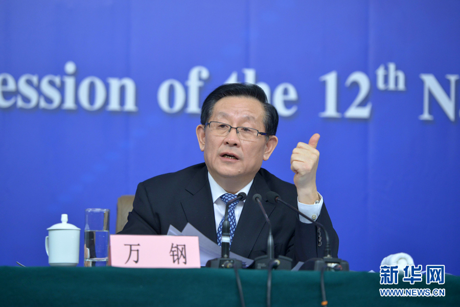 ??? 十二屆全國人大三次會議新聞中心于3月11日10時(shí)45分舉行記者會,邀請科技部部長萬鋼就科技改革與發(fā)展回答中外記者提問。圖為萬鋼回答記者提問。新華網(wǎng)/中國政府網(wǎng) 郭小天 攝