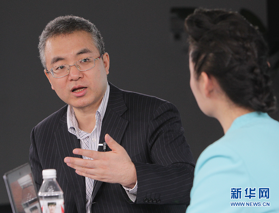 2015年3月13日,中國人民銀行金融研究所所長姚余棟做客新華網(wǎng)2015全國兩會(huì)特別訪談。圖為姚余棟解答主持人的問題。 新華網(wǎng) 郭 研 攝