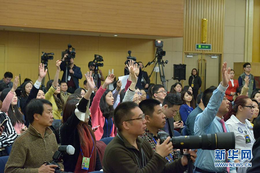 ????3月13日上午10時(shí),十二屆全國人大三次會(huì)議新聞中心邀請(qǐng)四川大學(xué)校長(zhǎng)謝和平、江蘇省教育廳廳長(zhǎng)沈健、廣東省教育廳廳長(zhǎng)羅偉其、海南大學(xué)校長(zhǎng)李建保、貴州大學(xué)校長(zhǎng)鄭強(qiáng)就完善高等教育治理結(jié)構(gòu)的相關(guān)問題回答中外記者提問。圖為現(xiàn)場(chǎng)記者踴躍提問。新華網(wǎng)/中國政府網(wǎng) 郭小天 攝