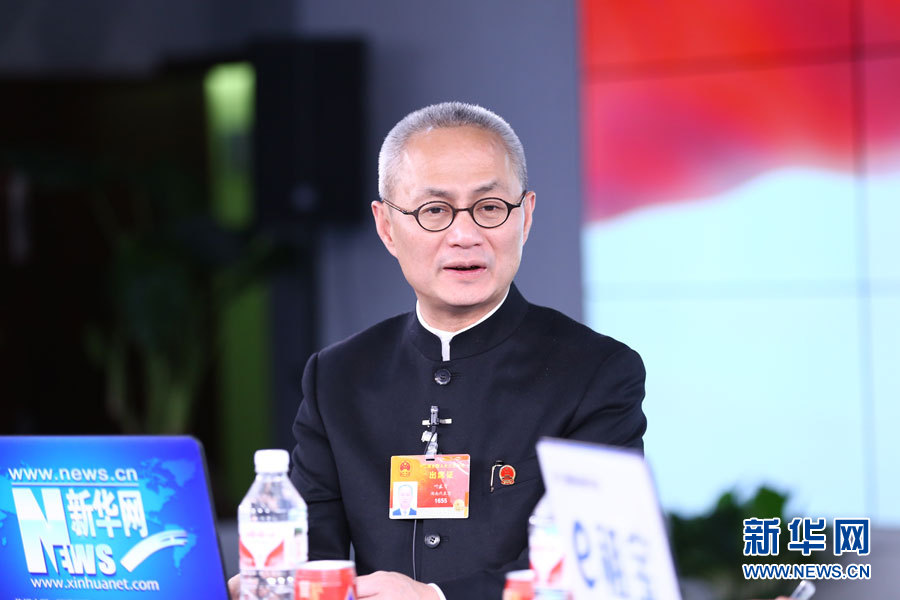??? 2015年3月14日,全國人大代表、鳳凰古城文化旅游投資股份有限公司董事長葉文智做客新華會客廳。圖為葉文智在訪談中。新華網(wǎng) 李江 攝