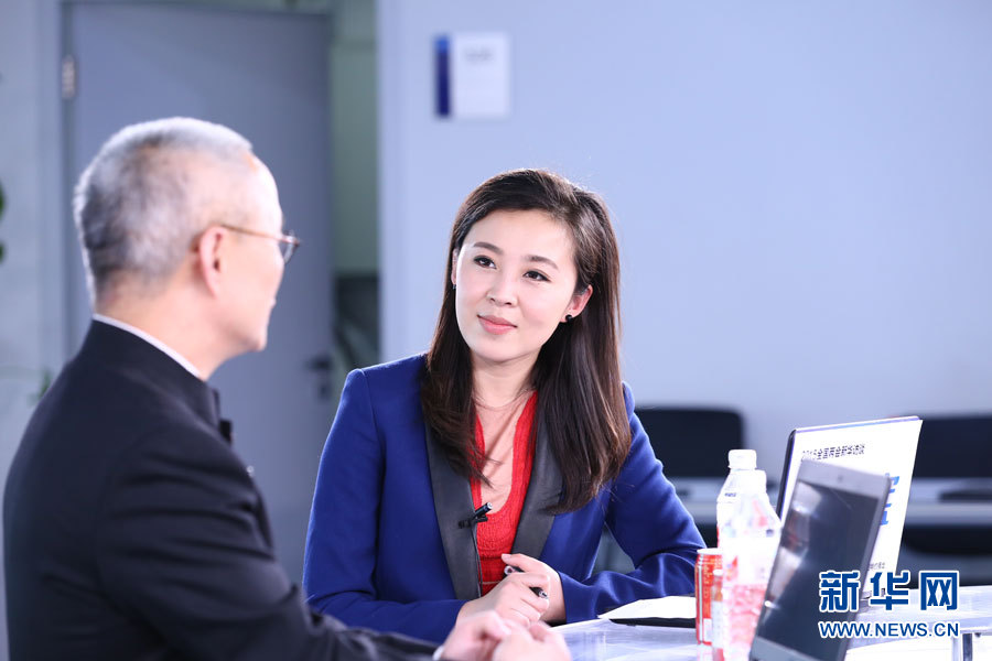 ??? 2015年3月14日,全國(guó)人大代表、鳳凰古城文化旅游投資股份有限公司董事長(zhǎng)葉文智做客新華會(huì)客廳。圖為訪談進(jìn)行中。新華網(wǎng) 李江 攝