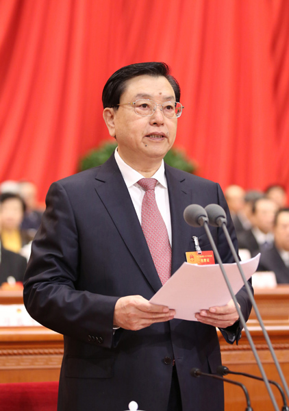 3月15日,第十二屆全國人民代表大會(huì)第三次會(huì)議在北京人民大會(huì)堂舉行閉幕會(huì)。張德江主持閉幕會(huì)并講話。 新華社記者 蘭紅光 攝