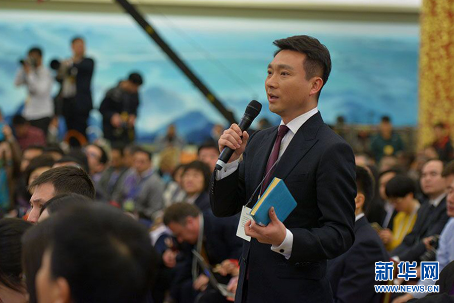 ????3月15日,國務(wù)院總理李克強(qiáng)在人民大會堂三樓金色大廳會見采訪十二屆全國人大三次會議的中外記者并回答記者提出的問題。圖為中央電視臺記者提問。新華網(wǎng)/中國政府網(wǎng)?郭小天 攝