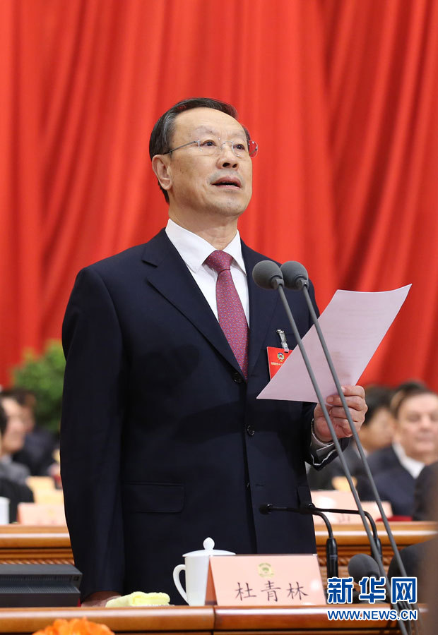 ??? 3月3日,中國(guó)人民政治協(xié)商會(huì)議第十二屆全國(guó)委員會(huì)第四次會(huì)議在北京人民大會(huì)堂開幕。杜青林主持開幕會(huì)。??新華社記者 龐興雷 攝
