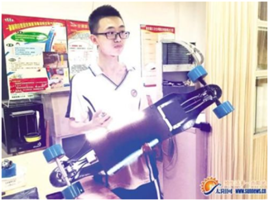 廈門第六中學(xué)蔡煒楨、顏明等研發(fā)的帶有剎車裝置的滑板車榮獲第67屆國際青少年Intel科學(xué)與工程大獎賽(ISEF)機械工程三等獎。