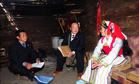 與此同時,江德華還虛心向當(dāng)?shù)馗髯迦罕妼W(xué)習(xí),學(xué)會了獨龍族、怒族、傈僳族和藏族四種少數(shù)民族語言,在做好檢察官本職工作之外,他還經(jīng)常擔(dān)當(dāng)起翻譯的角色。憑借一股韌勁和鉆勁,江德華成為了新中國成立以來的第一個獨龍族檢察官,成為了貢山縣檢察院的辦案能手,成了村里人的驕傲。