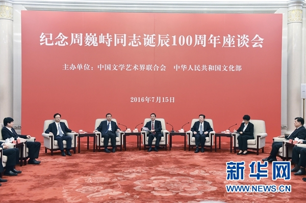 新華社北京7月15日電 紀(jì)念周巍峙同志誕辰100周年座談會(huì)7月15日在京舉行。中共中央政治局委員、中央書(shū)記處書(shū)記、中宣部部長(zhǎng)劉奇葆出席座談會(huì)并講話(huà)。中國(guó)文聯(lián)主席孫家正出席。