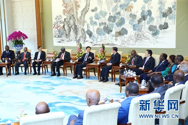 7月28日,國(guó)家副主席李源潮在北京集體會(huì)見(jiàn)出席中非合作論壇約翰內(nèi)斯堡峰會(huì)成果落實(shí)協(xié)調(diào)人會(huì)議的非方代表團(tuán)團(tuán)長(zhǎng)。 新華社記者 丁海濤 攝