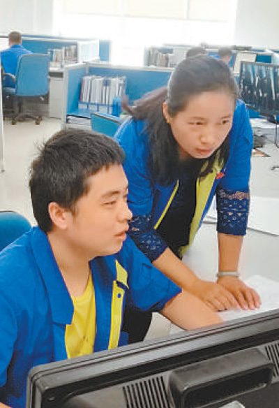 姜妍(右)在指導員工修改設(shè)計。本報記者 何 勇攝