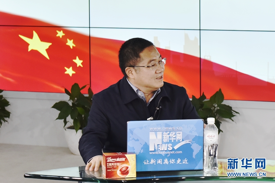 2016年3月12日,全國人大代表、正邦集團(tuán)董事局主席、總裁林印孫做客新華網(wǎng)兩會(huì)訪談直播間。圖為林印孫在回答主持人提問。新華網(wǎng) 郭小天 攝