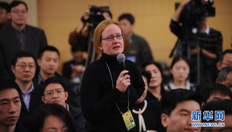 ?????十二屆全國人大四次會(huì)議新聞中心于3月12日(星期六)14時(shí)30分在梅地亞中心多功能廳舉行記者會(huì),邀請(qǐng)國務(wù)院國有資產(chǎn)監(jiān)督管理委員會(huì)主任肖亞慶、副主任張喜武、副主任黃丹華和副秘書長、新聞發(fā)言人彭華崗就“國企改革”的相關(guān)問題回答中外記者的提問。圖為金融時(shí)報(bào)記者提問。新華網(wǎng)/中國政府網(wǎng) 陳杰 攝