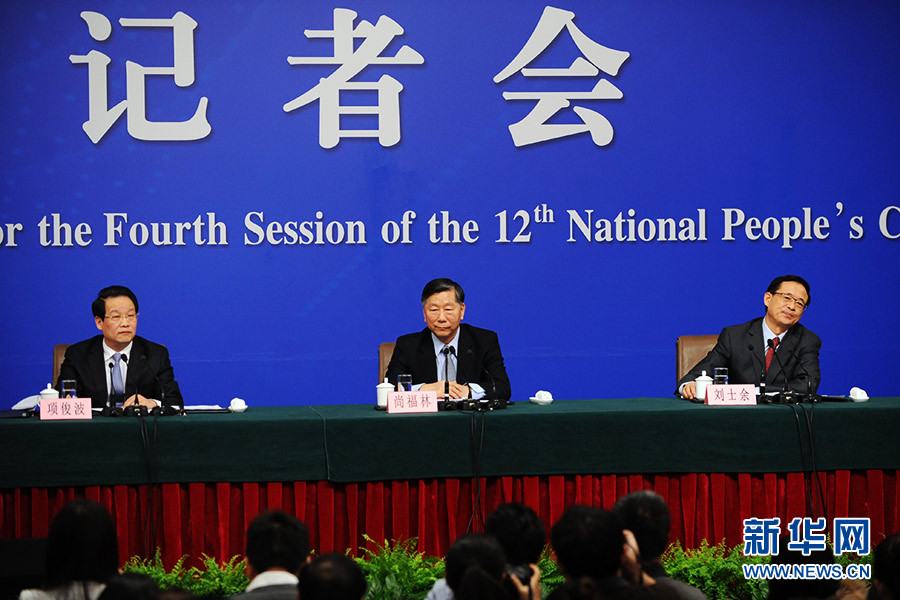 3月12日,十二屆全國(guó)人大四次會(huì)議在梅地亞中心多功能廳舉行記者會(huì),邀請(qǐng)中國(guó)銀行業(yè)監(jiān)督管理委員會(huì)主席尚福林、中國(guó)證券監(jiān)督管理委員會(huì)主席劉士余、中國(guó)保險(xiǎn)監(jiān)督管理委員會(huì)主席項(xiàng)俊波回答中外記者的提問(wèn)。圖為記者會(huì)主席臺(tái)。新華網(wǎng)/中國(guó)政府網(wǎng) 陳杰 攝