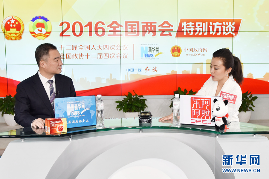 3月12日,全國人大代表,運(yùn)城市市長王清憲做客新華網(wǎng)2016全國兩會(huì)特別訪談,與新華網(wǎng)網(wǎng)友在線交流。圖為王清憲在訪談現(xiàn)場。新華網(wǎng) 付宇鵬 攝