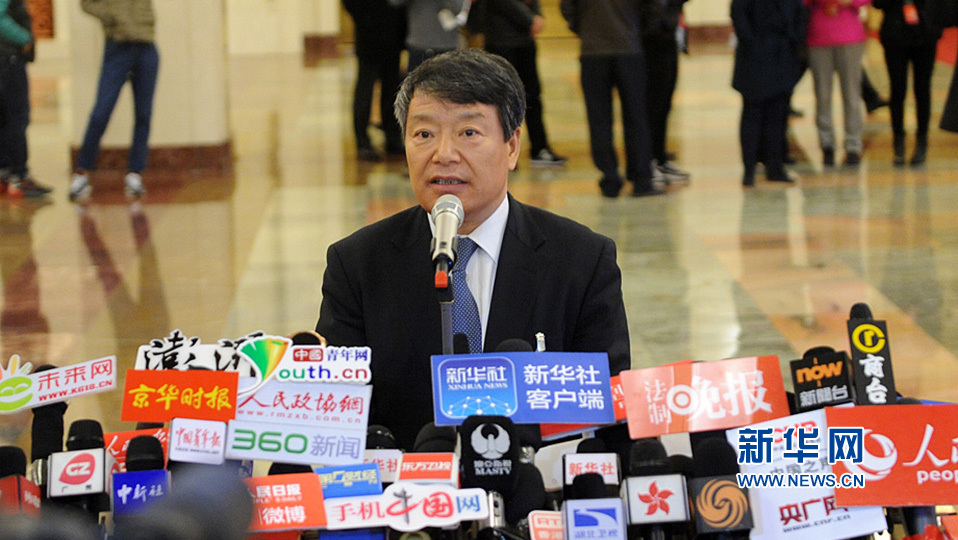3月13日上午9時,第十二屆全國人民代表大會第四次會議將在人民大會堂舉行第三次全體會議,聽取最高人民法院院長周強關于最高人民法院工作的報告,聽取最高人民檢察院檢察長曹建明關于最高人民檢察院工作的報告。圖為發(fā)改委主任徐紹史在部長通道接受采訪。新華網(wǎng)/中國政府網(wǎng) 陳競超 攝