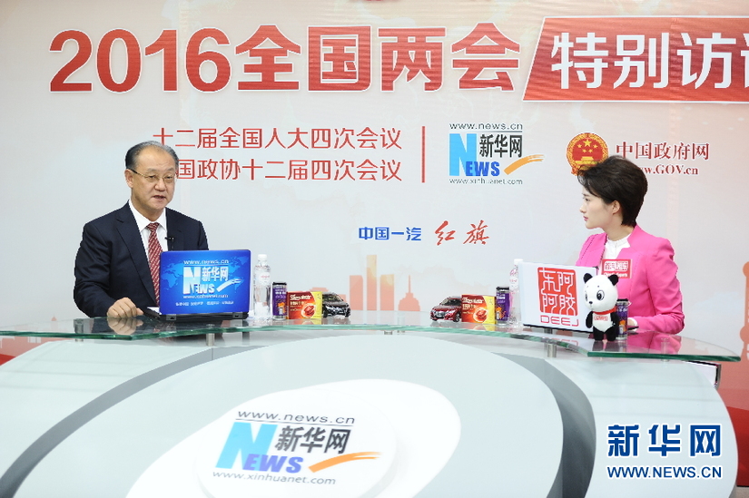 2016年3月13日,全國政協(xié)委員,中國中醫(yī)科學(xué)院廣安門醫(yī)院院長王階做客新華網(wǎng)兩會訪談直播間。圖為王階在訪談現(xiàn)場。新華網(wǎng) 盧志佳 攝