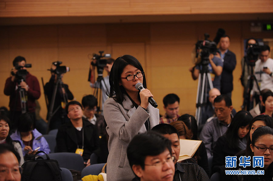 十二屆全國人大四次會議新聞中心于3月15日(星期二)10時在梅地亞中心多功能廳舉行記者會,邀請住房和城鄉(xiāng)建設部部長陳政高、副部長陸克華、副部長倪虹就“棚戶區(qū)改造和房地產工作”的相關問題回答中外記者的提問。圖為光明日報記者提問。新華網/中國政府網 陳杰 攝