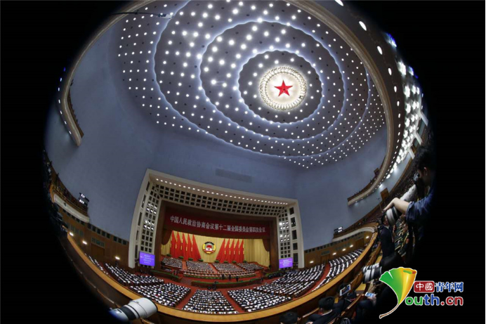 中國(guó)人民政治協(xié)商會(huì)議第十二屆全國(guó)委員會(huì)第四次會(huì)議閉幕式在人民大會(huì)堂舉行。中國(guó)青年網(wǎng)記者 張炎良攝