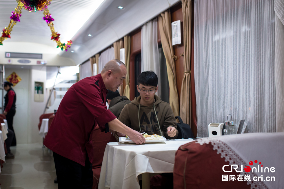 餐車工作人員一共5個名,廚師3人,服務(wù)員2人。忙不過來的時候白師傅也會充當服務(wù)員為旅客上菜。他說:“我們這趟車晚上5點多從杭州出發(fā),這個時間段屬于飯點兒,服務(wù)員經(jīng)常需要推著裝有盒飯的小車到各個車廂去,所以人手不足的時候誰有時間誰出去給旅客上菜?!?/p>