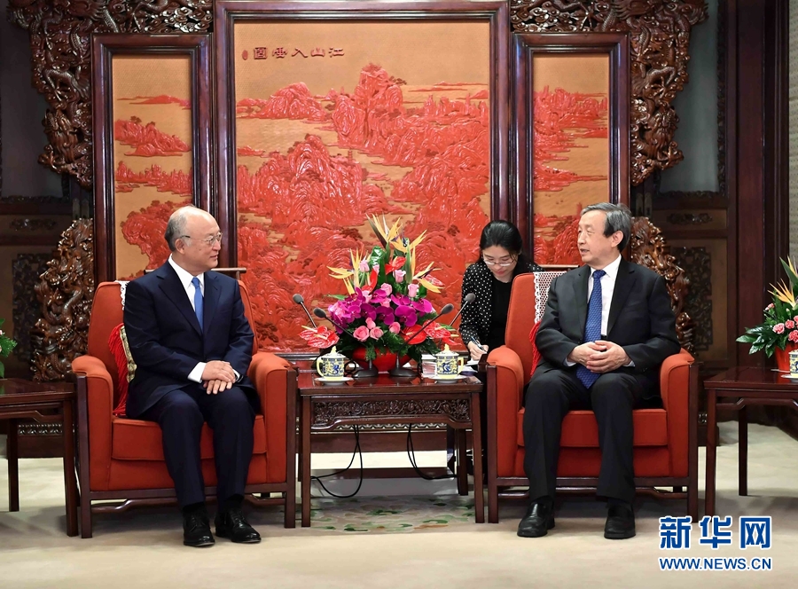 4月6日,國(guó)務(wù)院副總理馬凱(右)在北京中南海紫光閣會(huì)見(jiàn)國(guó)際原子能機(jī)構(gòu)總干事天野之彌(左)一行。 新華社記者 李濤 攝