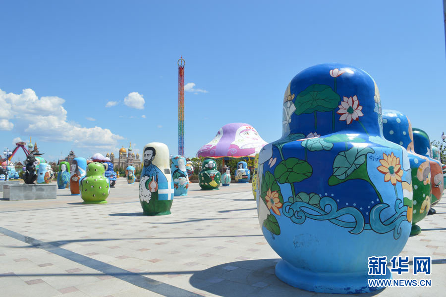 滿洲里市套娃景區(qū)內(nèi)的套娃各具特色(6月23日)。新華網(wǎng)記者 張敏彥 攝