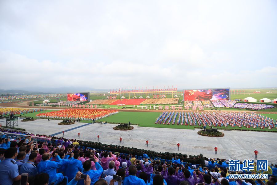 8月8日,內(nèi)蒙古自治區(qū)成立70周年慶祝大會在呼和塔拉內(nèi)蒙古少數(shù)民族群眾文化體育運動中心舉行。圖為群眾行進表演。新華網(wǎng)記者 陳杰 攝