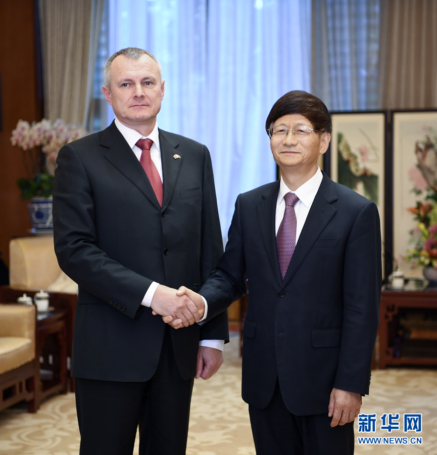 9月26日,中共中央政治局委員、中央政法委書記孟建柱在北京會(huì)見來華出席國際刑警組織第86屆全體大會(huì)的白俄羅斯內(nèi)務(wù)部長(zhǎng)舒涅維奇。新華社記者 張領(lǐng) 攝